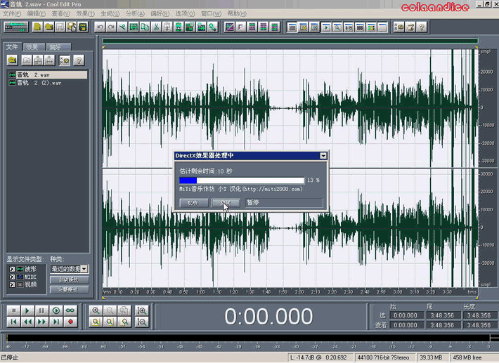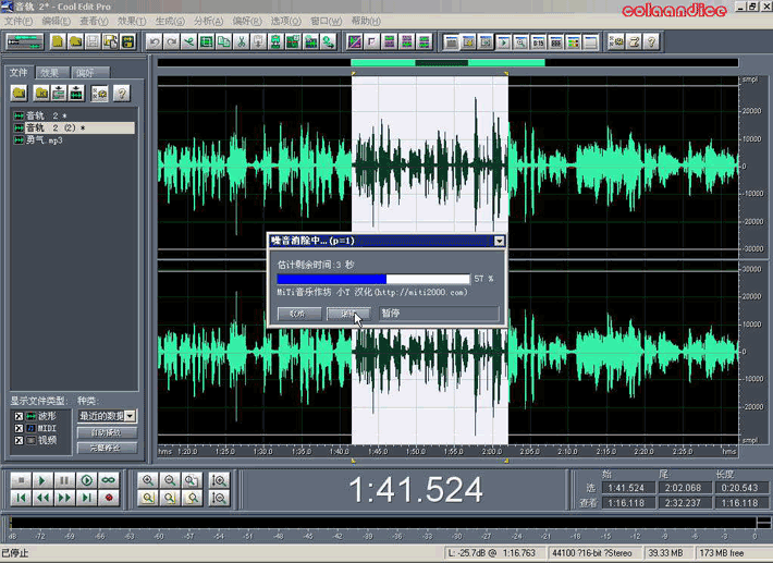 1.点"编辑--混缩到文件--全部波形"便可将伴奏和处理过的人声混缩合成在一起(图24)。