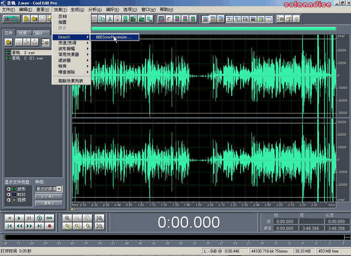 1.点击"效果--DirectX--BBE Sonic Maximizer"打开BBE高音激励器(图16)。