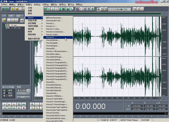 1.点击"效果--DirectX--Waves--C4"打开WaveC4压限效果器(图19)。