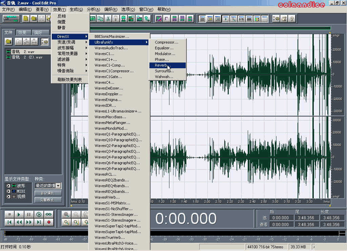 1.点击"效果--DirectX--Ultrafunk fx--Reverb R3"打开混响效果器(图21)。
