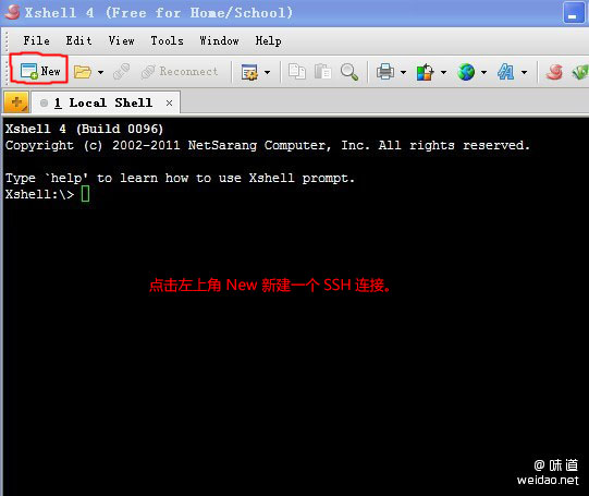 2,安装完成后,点击桌面 Xshell 4 打开,选择"新建";