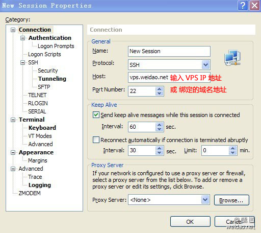 3,填写好 "Host",输入VPS IP地址 或 绑定的域名,点 "OK" ;
