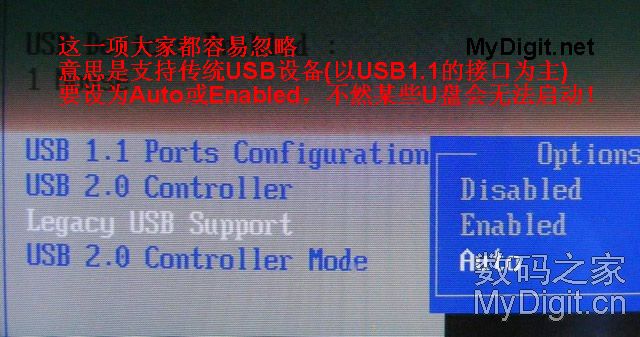 3、Legacy USB Support,一般也设为允许,有时USB设备出现奇怪的问题就是它引起的