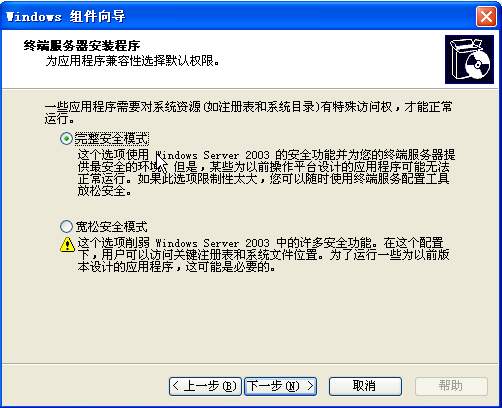 第二步:终端服务器安装模式有两种,它们为完整安全模式和宽松安全模式。一般情况下,选择完整安全模式(图3)。