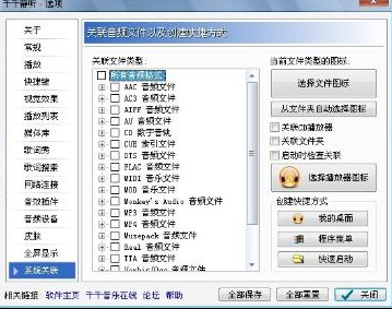 千千静听界面里-右键-千千选项-系统关联-把要关联的文件格式打上对号,然后保存就可以了