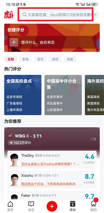 2、在评分界面中点击上方的【搜索框】,然后去进行搜索;
