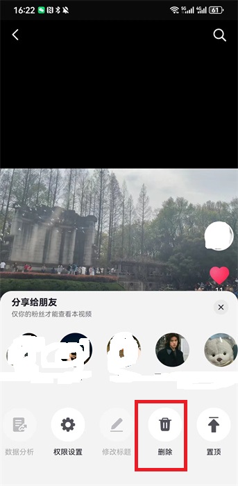 4、弹出的功能设置界面中,我们往左滑动功能,就可以在最后的功能中找到【删除】按钮,对视频进行删除;