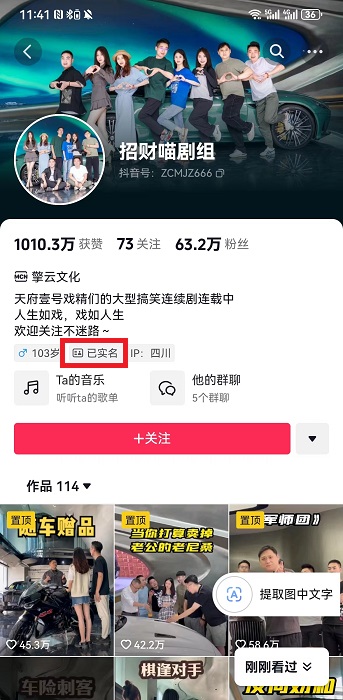 抖音实名认证怎么看