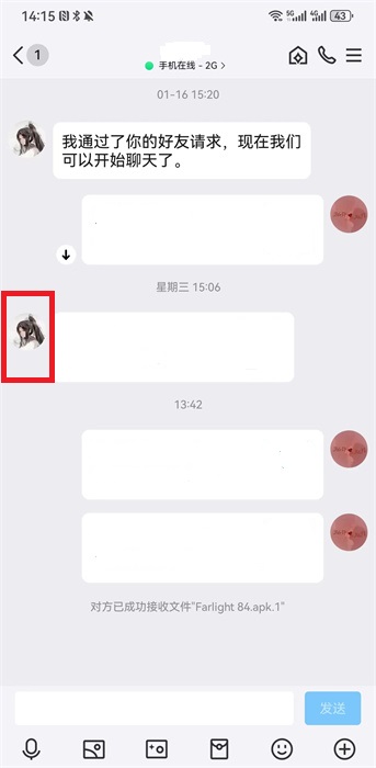 2、聊天界面中我们需要点击对方的【头像】,进入到对方的资料界面;