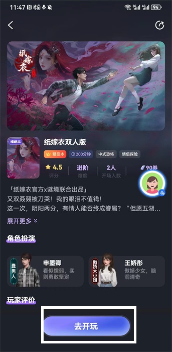 2、进入到副本库中之后,选择一个多人或者是双人副本进入其中,以下以【纸嫁衣双人版】为例点击进入其中;