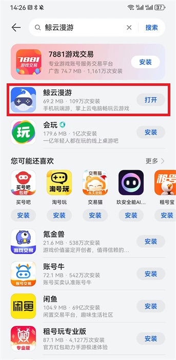 1、我们需要在手机上下载【鲸云漫游app】去进行云游戏体验,因为目前只有这一款平台上上线了该游戏的云游戏;
