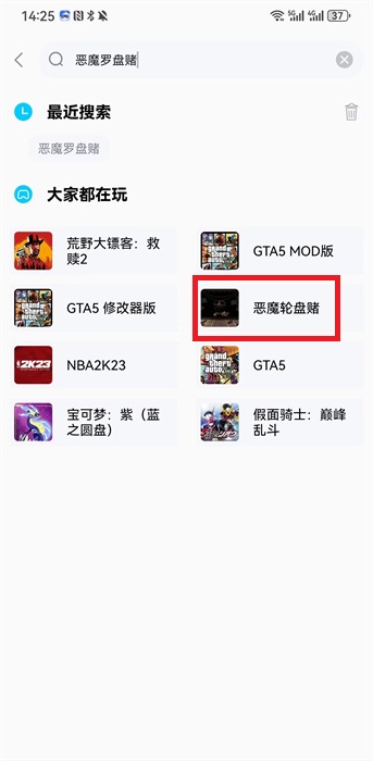 2、在软件中我们可以直接搜索【恶魔轮盘赌】就可以直接搜索到游戏;