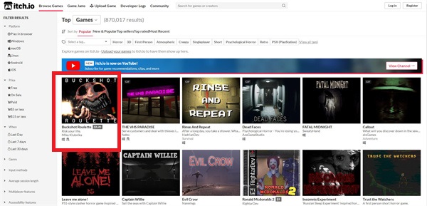 1、首先你需要进入到游戏的官方网站【itch.io】,在游戏平台的官网上,就可以看到该游戏,点击游戏进入到游戏详情界面;