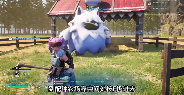 3、建造完成之后,就可以释放帕鲁去进行配种,需要进入到农场的中间把帕鲁们扔进去配种,不要在围栏门口扔,有可能扔不进去;