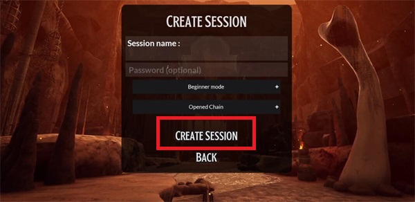 2、创建房间的详情界面中,可以设置一个密码,然后也可以选择一个难度,完成设定之后点击【Create Session】就可以进入到游戏中;