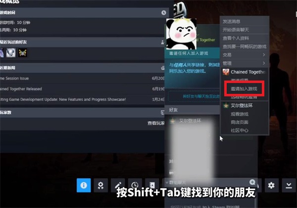4、进入到游戏中之后可以正常的体验,不用等待好友加入,可以按【shift+Tab】就可以唤出Steam的好友界面,点击好友就可以看到【邀请加入游戏】邀请好友和自己联机体验。