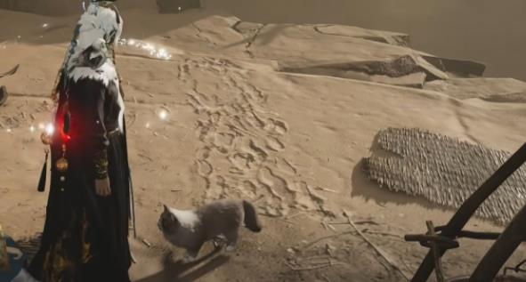 1、先通过传送点到达黄沙道区域,之后朝着地图左下角方向行进,在行进过程中留意周围平台,即可发现第一处猫戏位置,靠近后与猫咪互动便能完成收集。