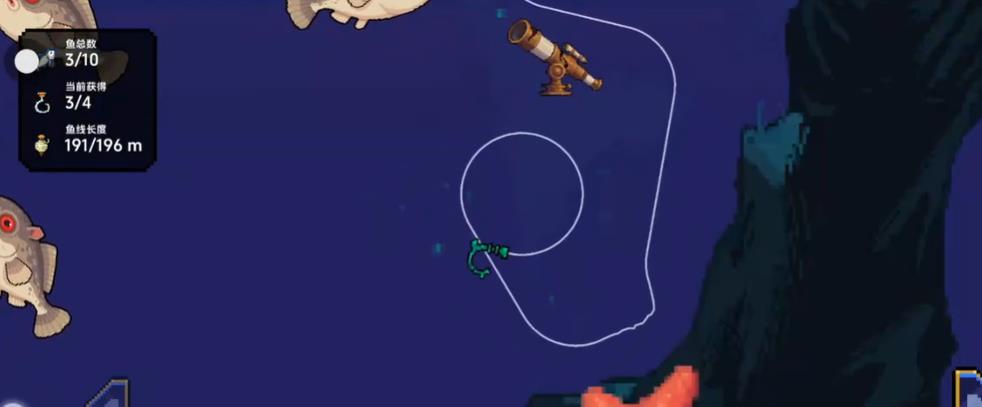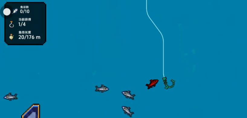 5、抛竿后可通过方向键控制鱼钩移动多撞击鱼类造成伤害同时避开海洋杂物遵循从小鱼到大型鱼的垂钓顺序提升成功率。