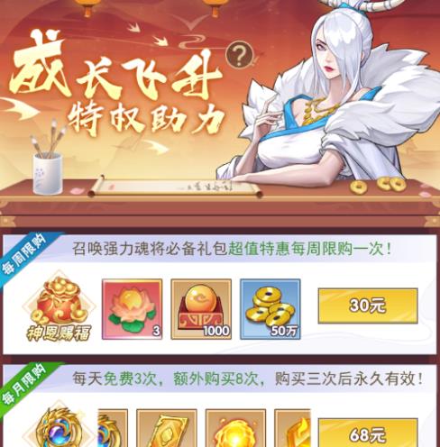 2、参与在线奖励、七日活动、开服专享等系统活动,积攒抽卡资源,多次十连抽获取橙色魂将充实队伍。