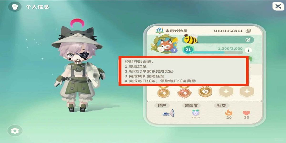1、订单板是重要来源,每日前20个订单每个可获100经验值,每累积完成5个订单有250经验值奖励,总计可获3000经验值,继续完成订单还能赚米姆币。
