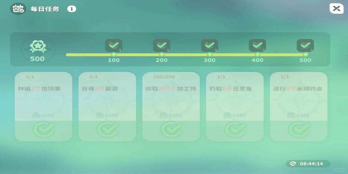 2、每日任务含五项,每项100经验值,总计500经验值,是每日稳定获取经验值的途径,成长任务通过解锁新内容引发,如进阶手册解锁新物品和功能设备,完成可获得经验值。