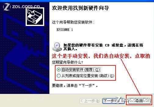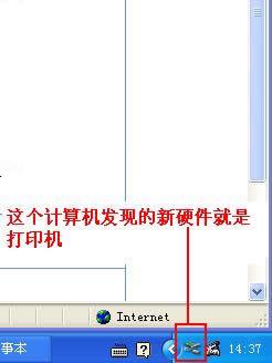 把装好墨盒的打印机 用USB连线连接电脑,在接好电源,当我们打开打印机电源开关,系统会提示发现新硬件,请看图片
