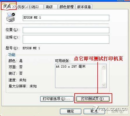 安装完毕后,我们打开控制面板,打印机和传真机,然后点默认的打印机 属性 测试打印机页,为什么要怎么做,通常我们都是这样做的,因为测试打印机页能测试我们安装的打印机驱动是否正确,如果这个时候测试出来的打印机纸张是正常的,说明我们的驱动安装是正确的,如果测试失败,可能是打印机驱动没有安装好,或者是墨盒没有墨,也可能是打印机本身问题,这里我们不做详细讨论.请看图片