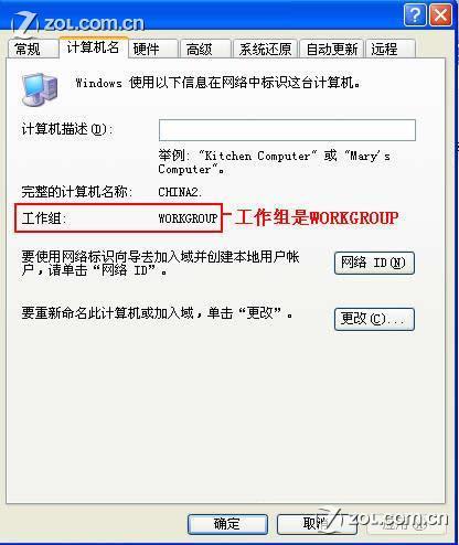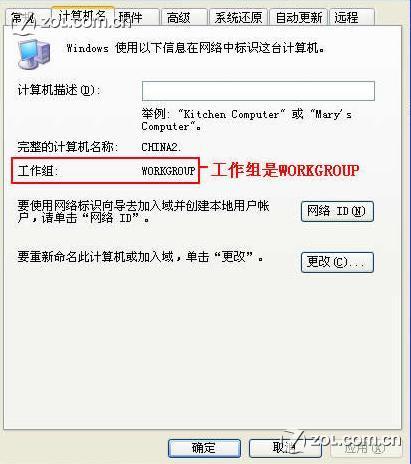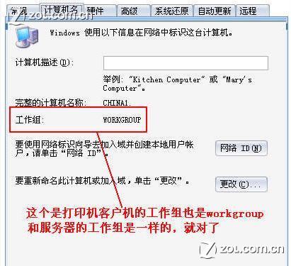第一步,首先我们打开我的电脑--属性--计算机名--看看工作组是否和打印机服务器的工作是否一致.请看图片a打印机服务器的工作组和图片b打印机客户机的工作组.