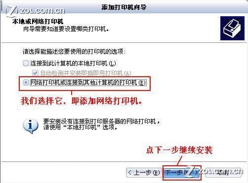 然后点下一步,这里会提示你是否安装网络打印机,我们选择是