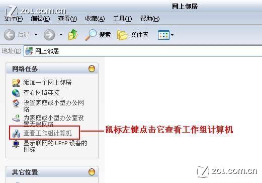 第一种添加方法,我们打开网上邻居,查看工作组和计算机,请看图