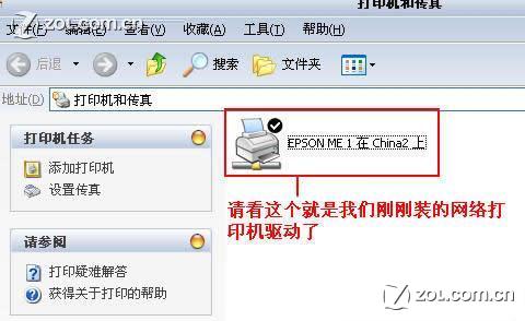 安装好后,我们打开我的电脑--控制面板--打印机和传真机,就会发现网络打印机已经添加好了,